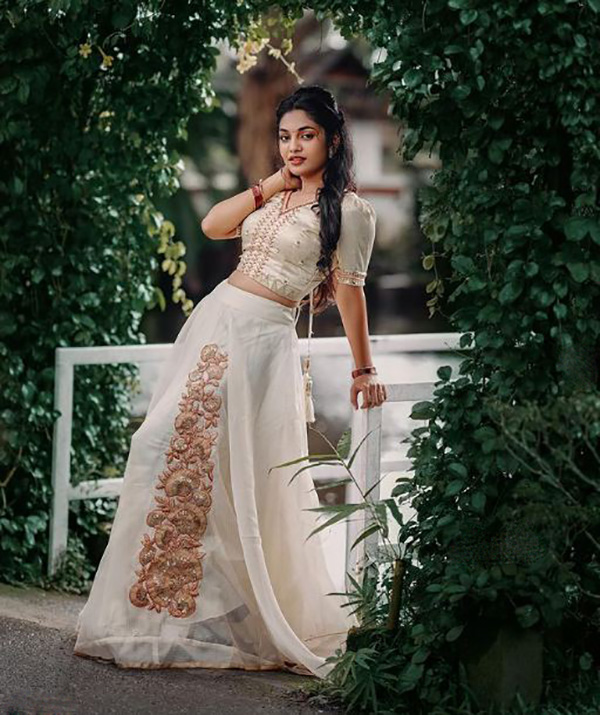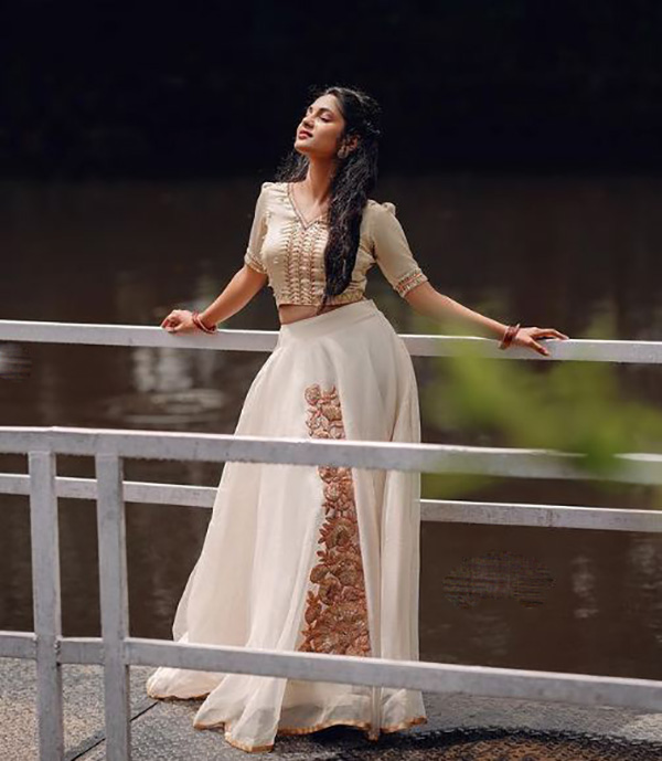 அதன்படி தற்போது இவர் வெளியிட்டு இருக்கக்கூடிய புகைப்படத்தில் வெள்ளை நிற பாவாடை அணிந்து அதற்கு மேட்ச் ஆக வெள்ளையில் தங்கத்தால் இளைத்தது போல ஒரு பிளவுஸையும் போட்டு வெண் நிற தேவதையாய் காட்சியளிக்கிறார்.இதைப் பார்த்த ரசிகர்கள் அனைவரும் ஸ்ட்னிங், ஸ்மார்ட் போன்ற பல ஒற்றை வார்த்தை கமெண்ட்களை போட்டு அவரை திணறடித்து வருகிறார்.ஒரு மார்க்கமாக காட்சி அளிக்கக்கூடிய இந்த புகைப்படத்தில்,