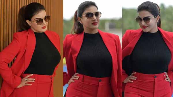 பிதுங்கி வழியும் முன்னழகை எடுப்பாக காட்டி கும்முனு போஸ் கொடுத்த ஹனிரோஸ்!!
