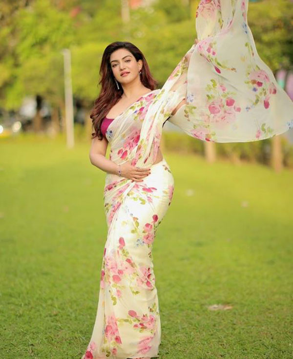 இந்நிலையில், தன்னுடைய இன்ஸ்டாகிராம் பக்கத்தில் Traneparent sleeveless Saree அணிந்து செம்ம ஹாட்டான சில புகைப்படங்களை வெளியிட்டு ரசிகர்களை புலம்ப வைத்துள்ளார் அம்மணி.