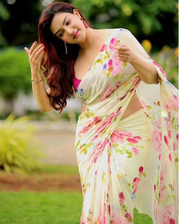 இந்நிலையில், தன்னுடைய இன்ஸ்டாகிராம் பக்கத்தில் Traneparent sleeveless Saree அணிந்து செம்ம ஹாட்டான சில புகைப்படங்களை வெளியிட்டு ரசிகர்களை புலம்ப வைத்துள்ளார் அம்மணி.