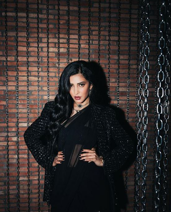 ப்பா முடியல… டிரான்ஸ்பரன்ட் புடவையில் ரசிகர்களுக்கு கவர்ச்சி விருந்து வச்ச ஸ்ருதிஹாசன்!!