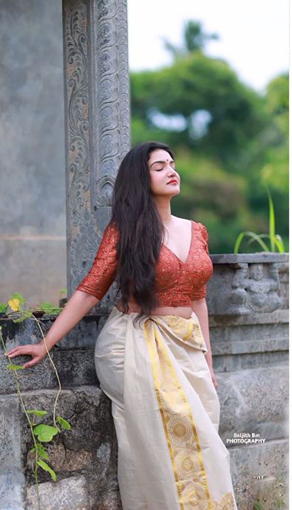இந்நிலையில், தன்னுடைய இன்ஸ்டாகிராம் பக்கத்தில் Traneparent sleeveless Saree அணிந்து செம்ம ஹாட்டான சில புகைப்படங்களை வெளியிட்டு ரசிகர்களை புலம்ப வைத்துள்ளார் அம்மணி.