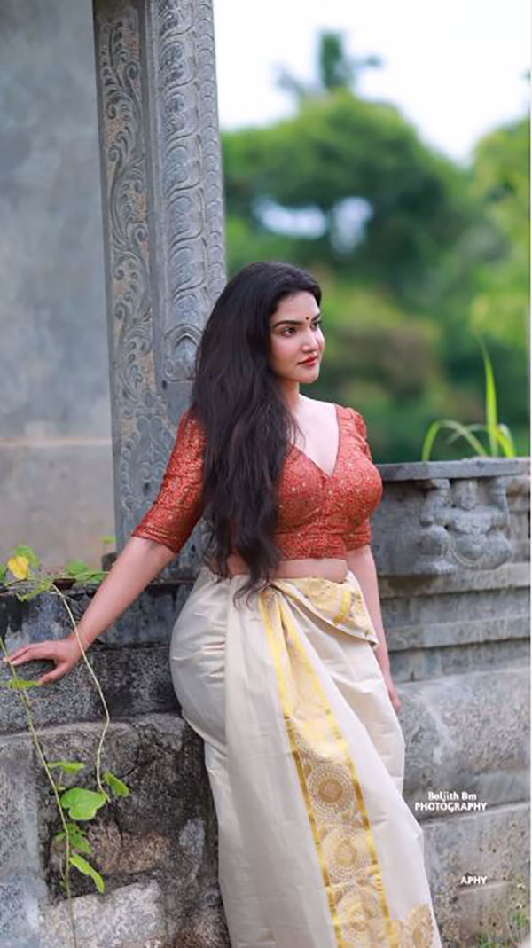 இந்நிலையில், தன்னுடைய இன்ஸ்டாகிராம் பக்கத்தில் Traneparent sleeveless Saree அணிந்து செம்ம ஹாட்டான சில புகைப்படங்களை வெளியிட்டு ரசிகர்களை புலம்ப வைத்துள்ளார் அம்மணி.