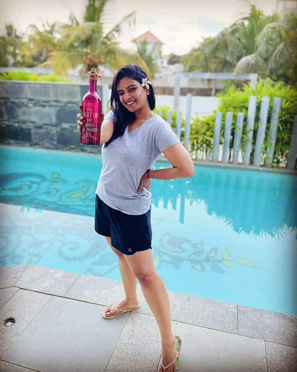 இவரின் முந்தைய புகைப்படங்களை எல்லாம் ரசிகர்கள் ஜூம் செய்து அவரது அழகை பார்த்து வியந்தனர். ஆனால் இப்ப கொஞ்சம் தாராளம் காட்டி போஸ்களை கொடுத்து ரசிகர்களை சந்தோஷ படுத்துகிறார். இந்நிலையில், குட்டியூண்டு ட்ரவுசர் அணிந்து கொண்டு நீச்சல் குளம் அருகில் நின்று கொண்டு கையில் பாட்டிலை வைத்துக்கொண்டு போஸ் கொடுத்து ரசிகர்களின் சூட்டை கிளப்பி விட்டுள்ளார் அம்மணி.