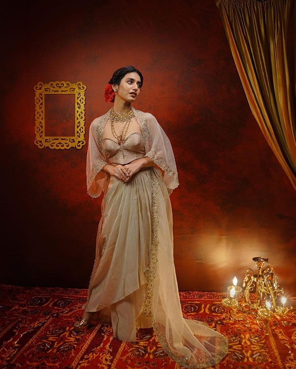 அதுக்கு காரணமே அவர் சமூக வலைத்தளங்களில் பதிவிடும் புகைப்படங்கள் தான். தற்போது பிரியா வாரியர் வயதுக்கு மீறிய கவர்ச்சியில் எல்லைமீறி புகைப்படங்களை பகிர்ந்து ஷாக் கொடுத்து வருகிறார். தற்போது லோ நெக் சேலையில் ரசிகர்களை வாய்ப்பிளக்க வைக்கும் புகைப்படத்தை பகிர்ந்துள்ளார்.