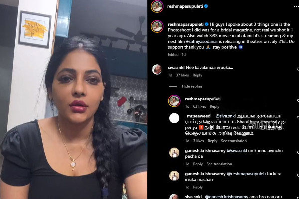 இணையத்தில் ஆக்டிவாக இருந்து போட்டோஷூட் புகைப்படம் வீடியோக்களை பகிர்ந்து வரும் ரேஷ்மா லைவ் சேட்டில் சில விசயத்தை பகிர்ந்துள்ளார். மேலும் மார்பகம் ஏன் பெரிதாக இருக்கிறது என்று கேலி செய்து கருத்தையும் பகிர்ந்திருந்தார் ஒரு நபர்.