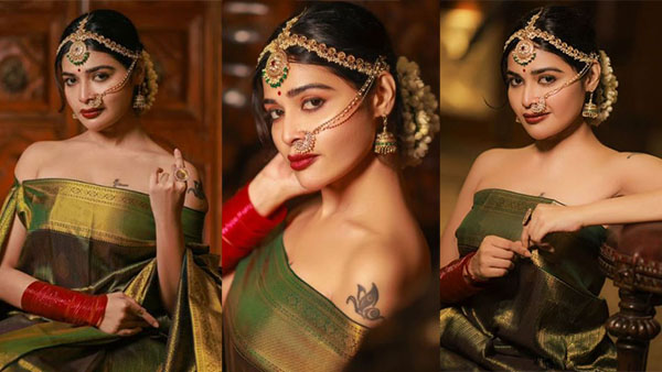 ஜாக்கெட் அணியாமல் புடவையில் செம சூடான போஸ் கொடுத்த தர்ஷா குப்தா!!