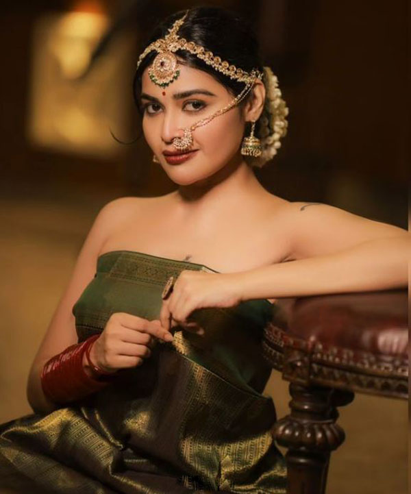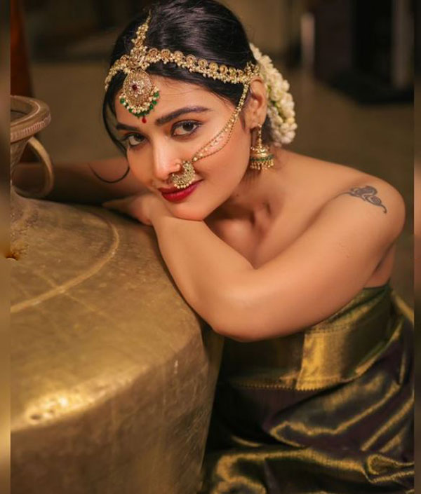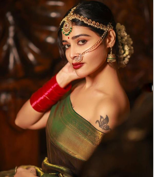 ஜாக்கெட் அணியாமல் புடவையில் செம சூடான போஸ் கொடுத்த தர்ஷா குப்தா!!