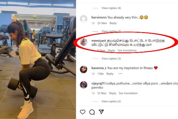 அப்படி லாஸ்லியா சமீபத்தில் ஜிம்மில் ஒர்க் அவுட் செய்யும் வீடியோவை தனது இன்ஸ்டாகிராம் பக்கத்தில் பகிர்ந்து இருக்கிறார்.