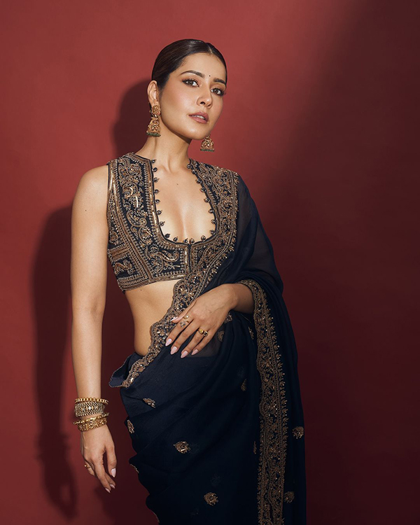 லோநெக் ஜாக்கட்டில் நெஞ்சுக்குழி வளைவுகளை காட்டி ரசிகர்களை சூடேற்றிய ராஷி கண்ணா!!