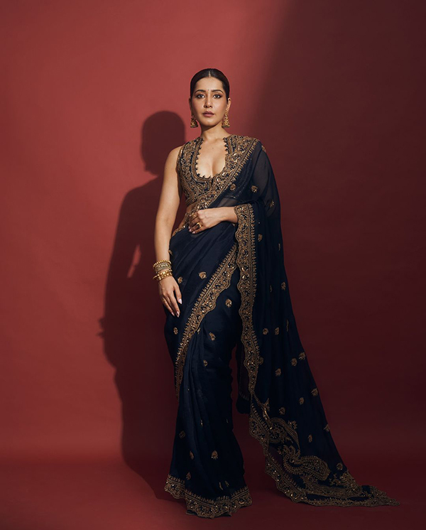 லோநெக் ஜாக்கட்டில் நெஞ்சுக்குழி வளைவுகளை காட்டி ரசிகர்களை சூடேற்றிய ராஷி கண்ணா!!