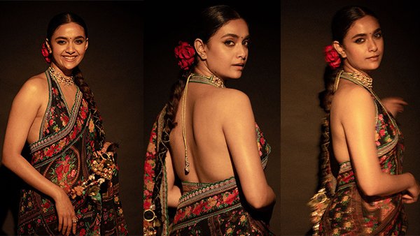 குனிந்தபடி அந்த இடத்தை காட்டி போஸ் கொடுத்த நடிகை கீர்த்தி சுரேஷ்!!