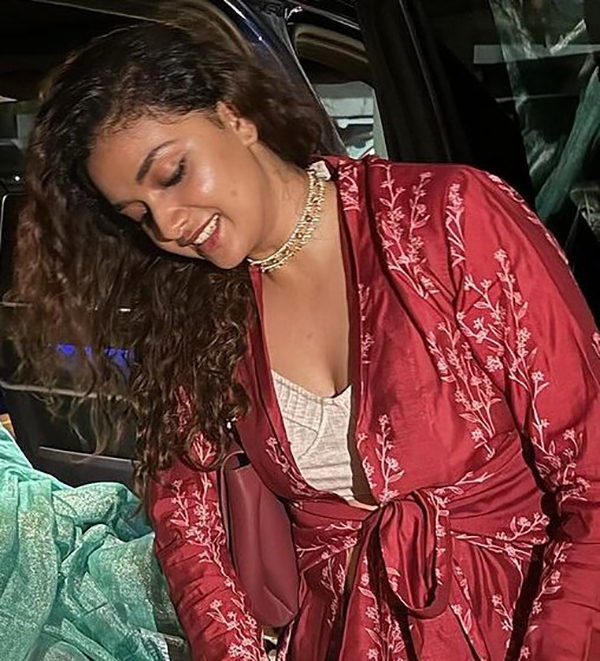 நடிகை கீர்த்தி சுரேஷ் சமீபத்தில் நைட் பார்ட்டி ஒன்றில் கலந்து கொண்டார். அதில் தன்னுடைய அம்மாவுடன் கலந்து கொள்ள வந்திருந்தார் நடிகை கீர்த்தி சுரேஷ். தன்னுடைய முன்னழகு எடுப்பாக தெரியும் விதமான கவர்ச்சியான உடையில் தோன்றியிருந்தார்.