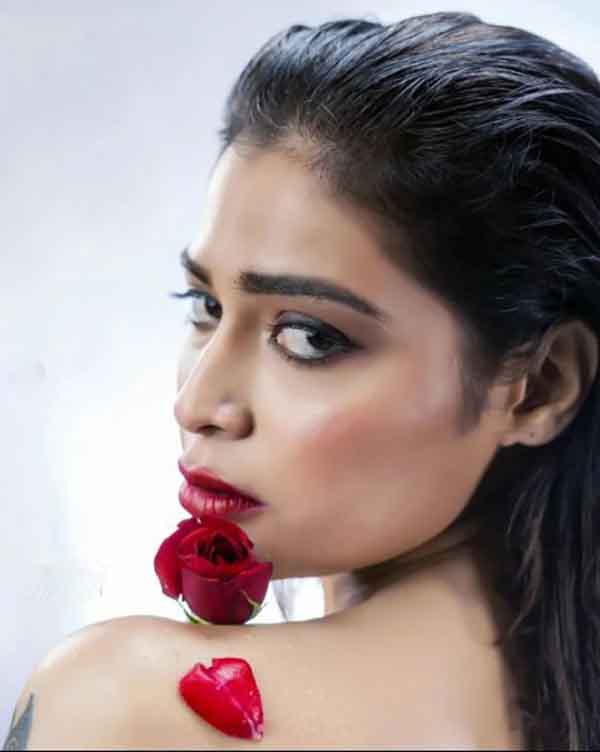 அந்த படம் மக்களிடையே சுமாரான வெற்றியை பெற்றது. தற்போது பட வாய்ப்புகளுக்காக மாடர்ன் உடை அணிந்து ரசிகர்களை ஈர்த்து வருகிறார் அந்தவகையில் தற்போது முன்னழகை பூவால் மறைத்து எடுப்பாக தெரிய கவர்ச்சி போஸ் கொடுத்து போட்டோஷூட் நடத்தி ரசிகர்களை சூடேற்றியுளார் அம்மணி .