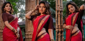 சேலையில் முட்டிட்டு நிக்கும் முன்னழகை காட்டி இளசுகளின் தூக்கத்தை கெடுத்த ஐஸ்வர்யா மேனன்!!
