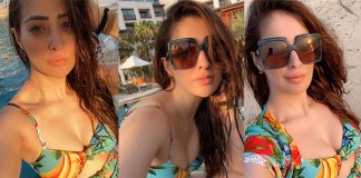 இறுக்கமான பனியனில் மேலாடையை திறந்து விட்டு முன்னழகை காட்டிய சனம் ஷெட்டி!!