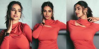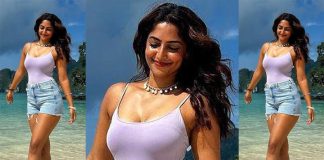 கவர்ச்சி உடையில் அப்பட்டமாக தெரிய போஸ் கொடுத்த ரெபா மோனிகா ஜான்!!