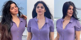 சட்டை பட்டனை திறந்து விட்டு கடற்கரையில் காத்து வாங்கும் திவ்யா பாரதி ஹாட் போட்டோஸ்!!