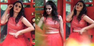 முட்டிக்கு மேல் உடை அணிந்து படுமோசமான போஸ் கொடுத்த விஜே அஞ்சனா!!