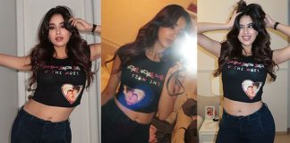 டைட்டான உடையில் செம கவர்ச்சி போஸ் கொடுத்த ஜான்வி கபூர்!!