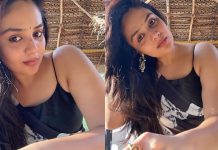 நிமிர்ந்து நிற்கும் முன்னழகை தூக்கி காட்டி செம சூடான போஸ் கொடுத்த நிவிஷா!!