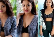 தொப்புள் குழி அழகை காட்டி தெறிக்க விட்ட தீராத விளையாட்டு பிள்ளை பட நடிகை தனுஸ்ரீ!!
