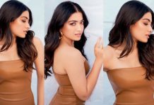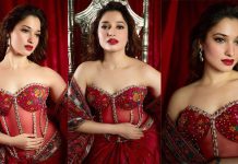 ஸ்ட்ராப்லெஸ் மேலாடையில் எடுப்பான முன்னழகு தெரிய போஸ் கொடுத்த தமன்னா!!