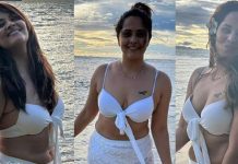 கடற்கரையில் படு மோசமான உடையில் சகலத்தையும் காட்டி கவர்ச்சி போஸ் கொடுத்த அனுசுயா!!