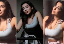 டைட்டான உடையில் முன்னழகை தூக்கலாக காட்டி ரசிகர்களை திக்குமுக்காட செய்த சஞ்சனா சிங்!!