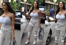 வழவழ உடம்புல பளபள டிரெஸ்… சேஃப்ப பக்காவா காட்டி ரசிகர்களை குஷிப்படுத்திய ஜான்வி கபூர்!!