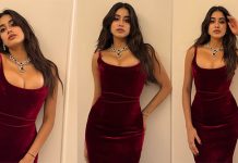 டைட்டான உடையில் செம கவர்ச்சி போஸ் கொடுத்த ஜான்வி கபூர்!!