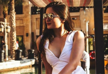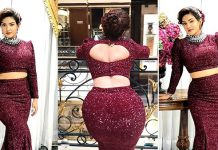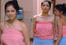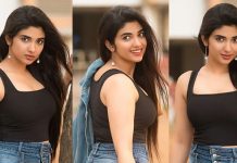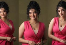 லோநெக் உடையில் பிதுங்கும் முன்னழகு எடுப்பாக தெரிய போஸ் கொடுத்த ரித்திகா சிங்!!