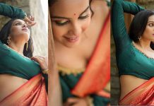 முன்னழகை காட்டி ரசிகர்களின் கண்களுக்கு கவர்ச்சி விருந்து படைத்த பிந்து மாதவி!!