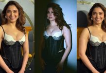 மேலாடையை விலக்கி விட்டு முன்னழகு தெரிய ஹாட் போஸ் கொடுத்த தமன்னா!!