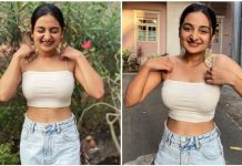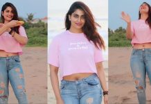 முன்னழகை தூக்கி காட்டிபடு கவர்ச்சியாக போஸ் கொடுத்து ரசிகர்களை சூடேற்றிய எஸ்தர் அனில்!!