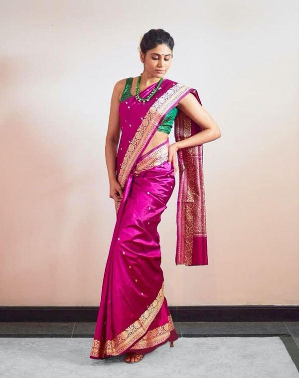 அந்த வகையில், குடும்ப குத்துவிளக்கு போன்று சேலையில் லட்சணமாக இருக்கும் புகைப்படத்தை அவர் பகிர்ந்துள்ளார். அதில், அவரது பார்வையை காமத்தை வெளிக்காட்டுவது போன்று இருப்பதாக இளசுகள் கருத்துக்களை பதிவிட்டு வருகின்றனர்.